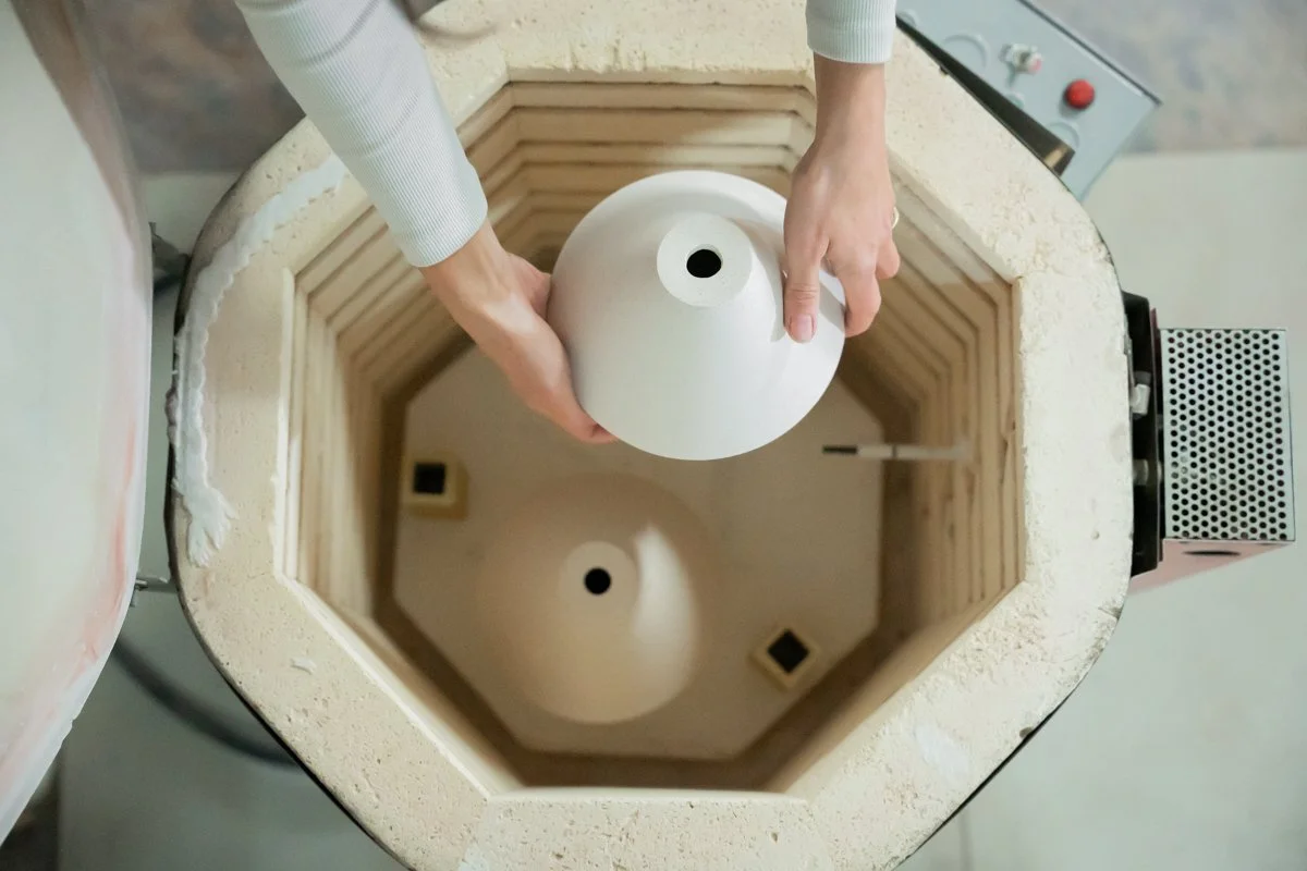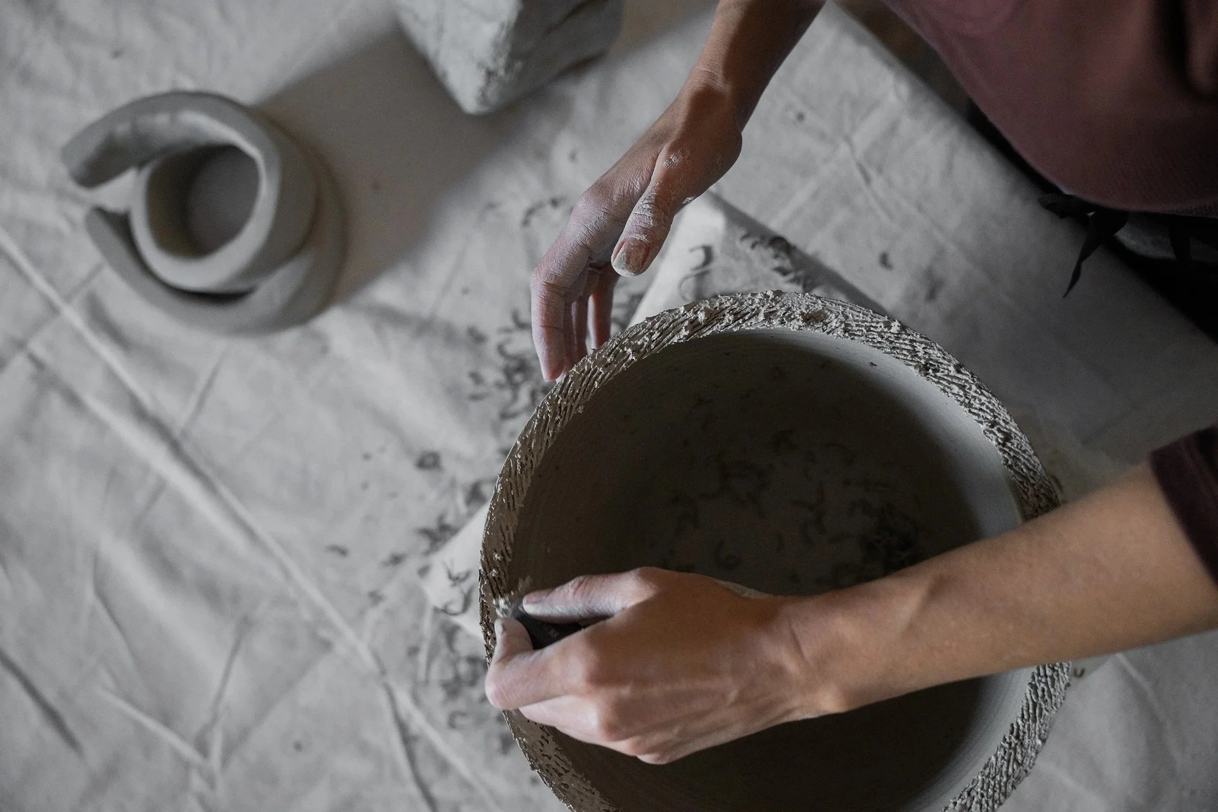 Using an immersive approach to lighting : Emily hand shapes each piece in clay with care and attention.